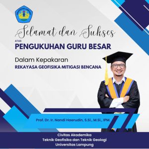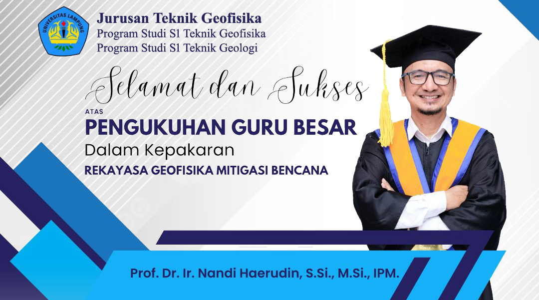 Segenap civitas akademika Jurusan Teknik Geofisika mengucapkan selamat dan sukses atas pencapaian Guru Besar bidang rekayasa geofisika mitigasi bencana kepada Prof. Dr. Ir. Nandi Haerudin, S.Si., M.Si., IPM. Penetapan guru besar berdasarkan keputusan Kementerian Pendidikan Tinggi Sains dan Teknologi No. 100598/M/07/2024 tanggal 5 November 2024. Semoga pengangkatan ini semakin memperkaya khasanah keilmuan geofisika di Universitas Lampung dalam upaya mitigasi bencana kebumian dalam skala nasional dan global.